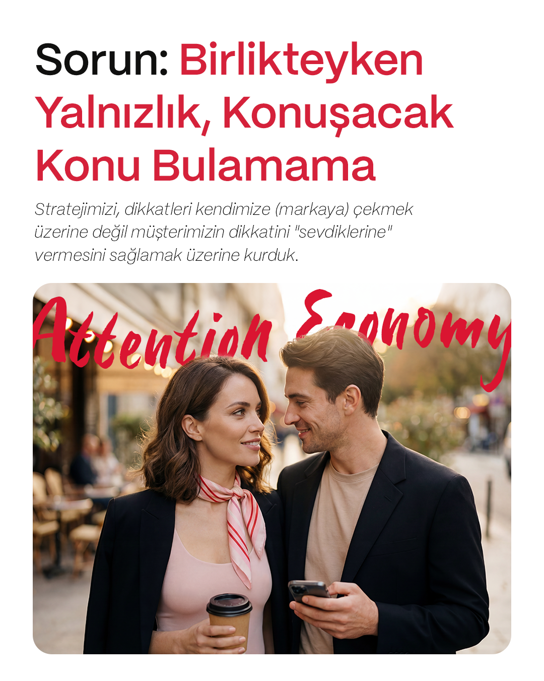 Stratejik Yaklaşım: Markayı "Kahve satan dükkan" algısından çıkarıp "Gerçek Bir İletişim" konumuna taşıdık. Stratejimizin temel mottosu şuydu: "Biz, senin dikkatini isteyen bir marka değiliz. Biz, senin dikkatini sevdiklerine vermeni isteyen bir markayız." Bu ters köşe konumlandırma, markaya duyulan güveni ve sevgiyi artıracak temel kaldıraç olarak belirlendi.