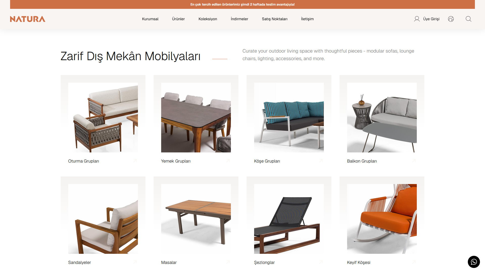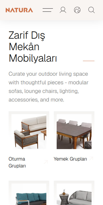 Siteyi bir bahçede yürür gibi kurguladık: kapıdan giriyorsun, koleksiyonların arasında dolaşıyor, dokulara dokunuyor, ölçünü seçiyor ve tek nefeste “teklif iste” diyorsun. Her sayfa, bir oturma grubunun etrafında toplanmış sohbet gibi akıyor; iki dil arasında geçiş yapmak, gölgeli bir patikadan güneşe çıkmak kadar doğal. Hız hissi sessiz: butonlar acele etmiyor, görseller gösteriş yapmıyor; yol, merakını randevuya çeviriyor. Kısacası bu site, vitrin değil—davetkâr bir rota: keşiften karara, karardan görüşmeye.