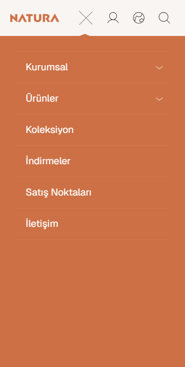 Başlıklarda sakin ama iddialı bir sans serif ailesi (Maxima Nouva) ile güçlü ritim; gövdede nötr bir grotesk ile uzun okumalarda konfor sağlandı. Renk sistemi, dış mekânın doğal dokusunu taşıyan iki ana tonda kuruldu: #ce7046 (ısınmış cephe/iroko sıcaklığı) ve #dcb95 (kumtaşı nötrü). Yüksek okunurluk ve kontrast için kombinasyonlar erişilebilirlik kriterlerini karşılayacak şekilde standardize edildi.