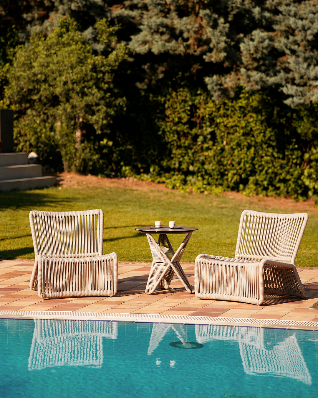 Dış mekânda “Outdoor Serenity” dilini sahada kurduk: doğal ışık, sakin kadrajlar ve malzemenin kendi sesi. Iroko’nun ısısı, toz boyalı alüminyumun net çizgisi ve %100 el örgüsü rope’un ritmi; acele etmeyen, nefesli bir tempoyla anlatıldı. Günün yumuşak saatlerini tercih ettik; gölgeler ürünü değil mekânı tarif etti, renkler doğayı taklit etmeden onunla uyumlandı. Kompozisyonlarda göz hizası ve geniş nefesli boşluklar kullanıldı; ölçü ve ergonomiyi hissettirmek için insan izi (oturum, dokunuş, yumuşak hareket) minimal dozda yer aldı. Her seri için üç katman üretildi: yaşam sahnesi (lifestyle) ile bağlam, ürün portresi (hero) ile form ve oran, detay makrolarıyla doku ve işçilik. Hareketli versiyonlarda yavaş panlar ve kısa döngüler, aynı sakinliği Reels/Stories formatına taşıdı. Sonuç: üreticinin el emeğini parlatan, ürünü bağırmadan öne çıkaran, satış yolculuğuna doğal bir ilk temas sağlayan tutarlı bir çekim dili.