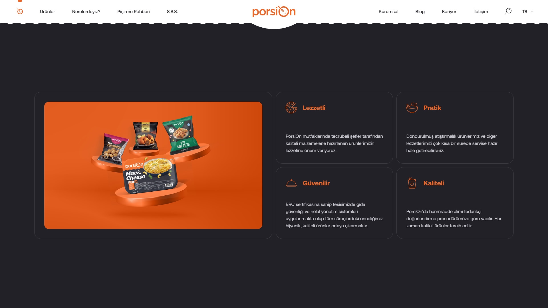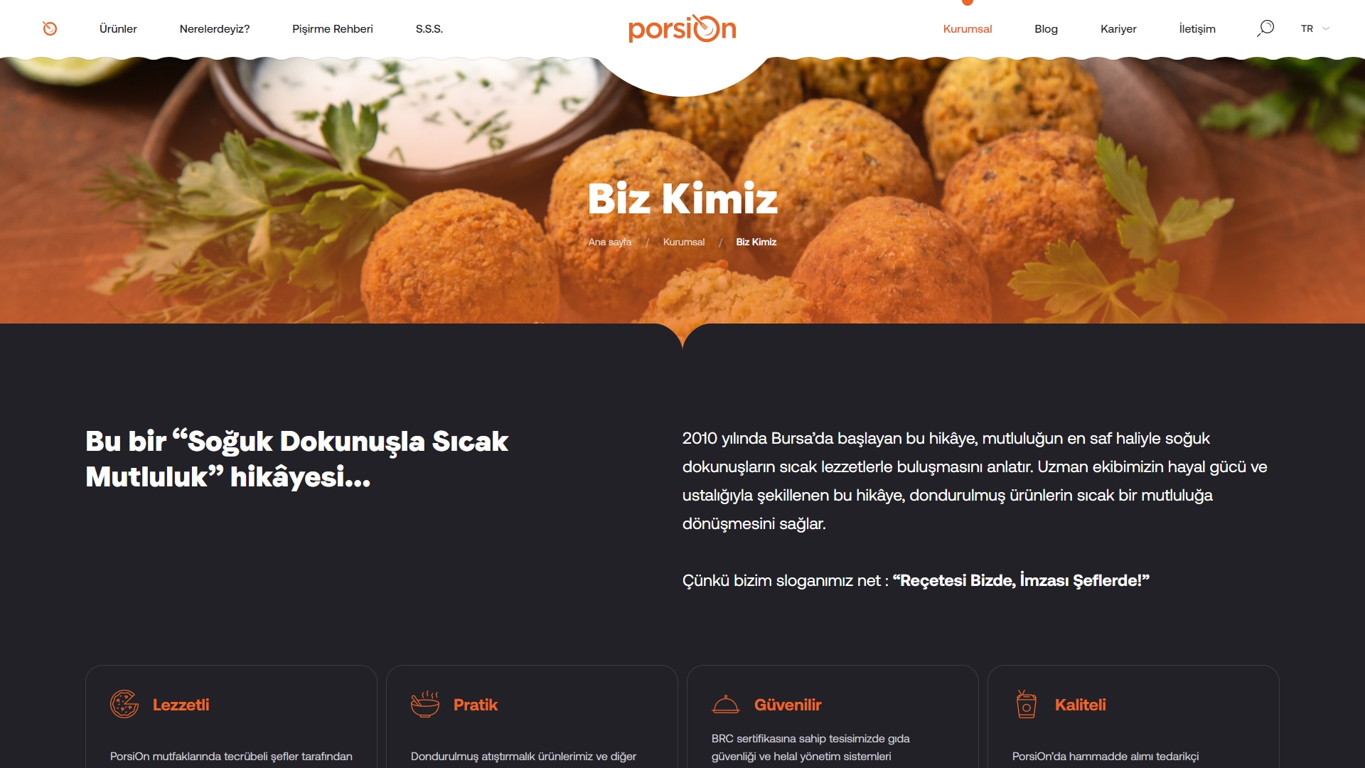 PorsiOn’un iki farklı iş kolu profesyonel mutfaklara yönelik B2B satış kanalı ve perakende tüketicilere yönelik B2C yapısı markanın dijital dünyada net bir ayrışma ihtiyacını ortaya koydu. Bu doğrultuda kullanıcı deneyimini merkeze alarak iki ayrı web arayüzü tasarlandı: PorsiOn Food: Otel, kafe ve restoranlara yönelik ürün grupları için yalın, profesyonel ve bilgi odaklı bir yapı. PorsiOn Lezzetleri: Tüketiciye hitap eden sıcak, samimi ve ilham veren bir dijital deneyim. Tüm yapı responsive web tasarım prensipleriyle geliştirildi ve özel yazılım tabanlı CMS paneli sayesinde içerik yönetimi, ürün güncellemeleri ve çok dilli yapı markaya özel hale getirildi. SEO uyumlu içerik mimarisi ve kolay yönlendirmeli navigasyon yapısı, kullanıcı deneyimini güçlendirirken markayı Avrupa pazarında hem kurumsal hem bireysel kullanıcılar için etkili bir dijital temas noktasına dönüştürdü.